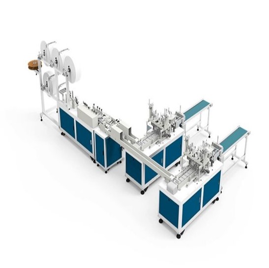 Medical face mask machine, full name is automatic high-speed flat earloop mask production line, used to produce disposable medical face masks in mass production.